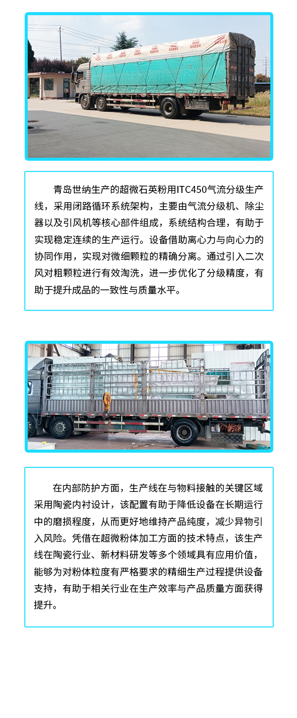 【青岛赢多多】超微石英用气流分级生产线ITC450发货现场